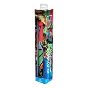 The Play-Mat in the standard size 61x35cm shows officially licensed artworks from Magic: The Gathering’s set Aetherdrift. The soft cushioned Play-Mat with non-slip underside improves the gaming experience, protects gaming cards and accessories, and is even more durable than classic Play-Mats thanks to its stitched edges.