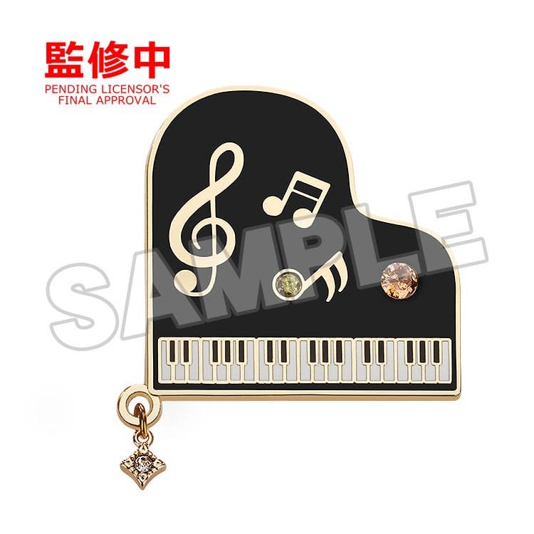 Introducing brooches with a violin and piano design.
