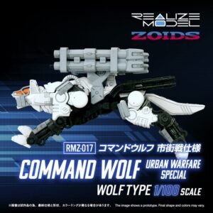 A specially designed articulation system allows full-body movement, enabling various action poses unique to wolf-type Zoids, such as roaring and sprinting. The weapons mounted throughout the body are movable, allowing various battle scenes from the anime to be recreated.