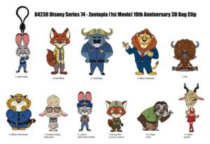 Expositor com 24 embalagens surpresa, cada uma com um clipe de espuma licenciado oficialmente.